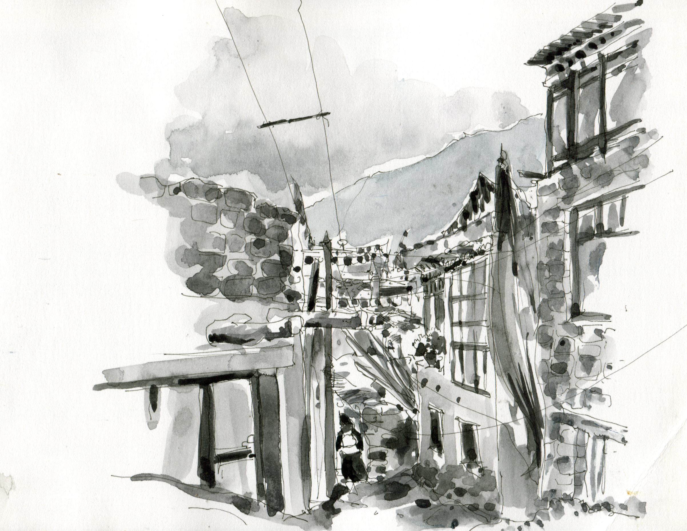 Une bonne journée commence toujours par un croquis au port. La séance de réparation de voile fait parfaitement l’affaire !