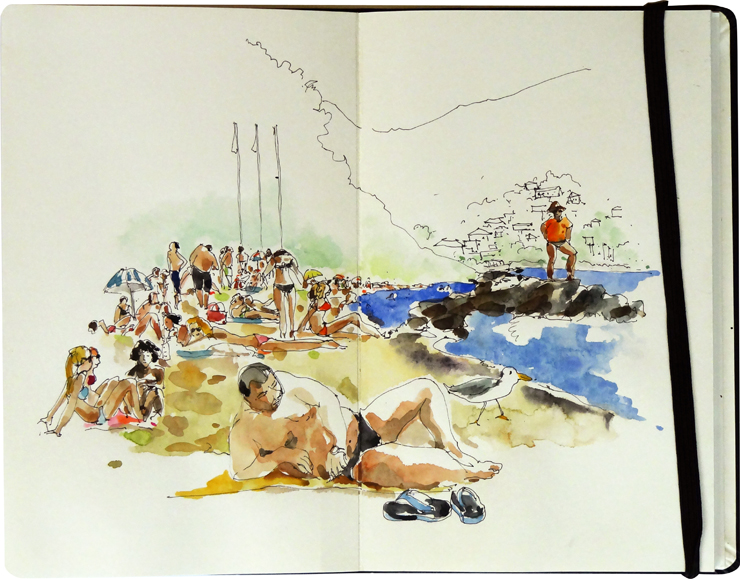 Pêcheurs à Grande Anse, encre et aquarelle. Delphine Priollaud-Stoclet
