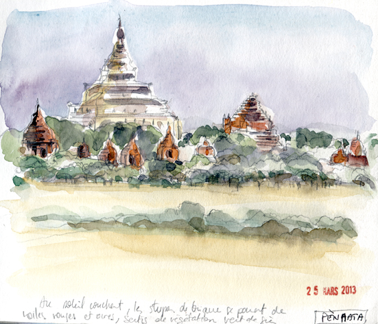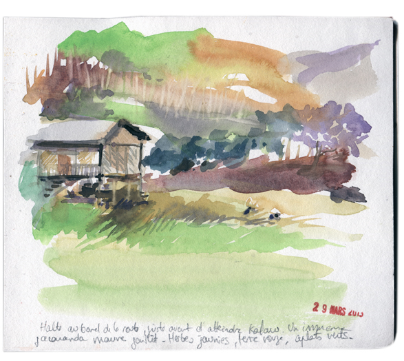 Le décor parfait pour une gouache rapide, point de départ d’une longue conversation avec le serveur, étudiant en arts plastiques. J’apprends que je suis déjà repérée dans toute la ville… « You are the painter ! »