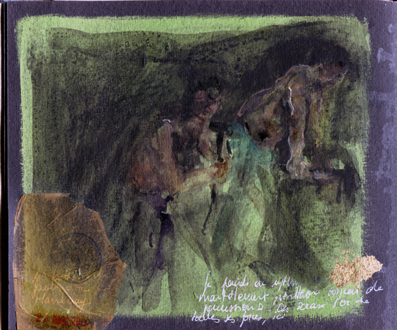 Tant pis ! Je me cale tant bien que mal en évitant les nuées de mouches vertes pour peindre la lumière orange et bleue projetée par les voiles tendues en guise de parasols, la chaleur poivrée, le rouge piquant des piments, le souffle de la foule, l’énergie nourricière et ces goûts que je devine puissants, sucrés et amers.