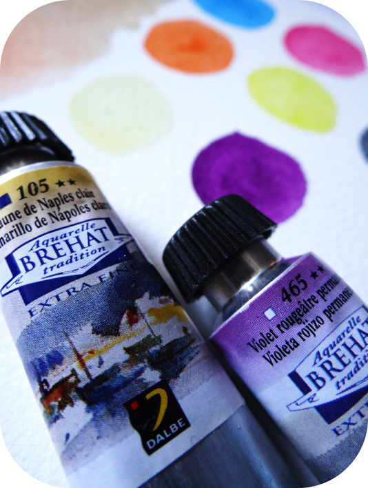 Aquarelle DalbeJ’ai complété mes couleurs avec quelques tubes d’aquarelle. D’une contenance de 15 ml, ils sont généreux et offrent la même qualité que les aquarelles en godets. Une mention particulière pour le jaune de Naples transparent, et le stil de grain, un brun délicat et subtil.