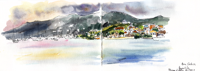 Pêcheurs à Grande Anse, encre et aquarelle. Delphine Priollaud-Stoclet