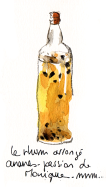 La fête des marchandes bat son plein au marché couvert du Marin. Puis-je décemment goûter au rhum arrangé de Monique à 10 heures du matin ? Allez, juste une gorgée pour lui faire plaisir. Un délicieux parfum d’orange amère et de passion…. Mmmmhhhhhh, absolutely delicious ! C’est vendu : je prends une bouteille qui rejoindra bientôt ses copines Neisson.