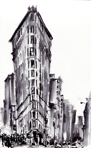 Je montre ensuite à Claudia le Flat Iron Building, un de mes buildings new-yorkais préféré. Nous le dessinons, légèrement à contre-jour, installées au milieu d’un petit marché provençal qui fleure bon la lavande. C’est délicieusement décalé !