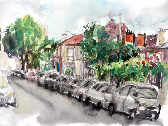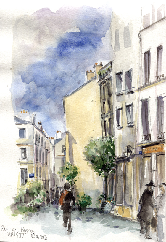 Rue des Rosiers, Paris, 3 juin 2013. Gouache sur Moleskine. Delphine Priollaud-Stoclet (c)