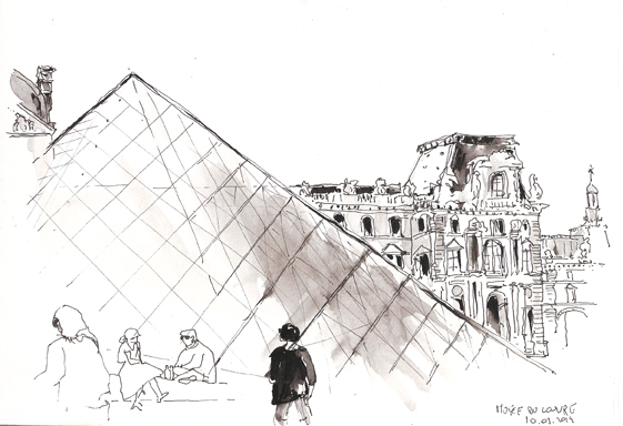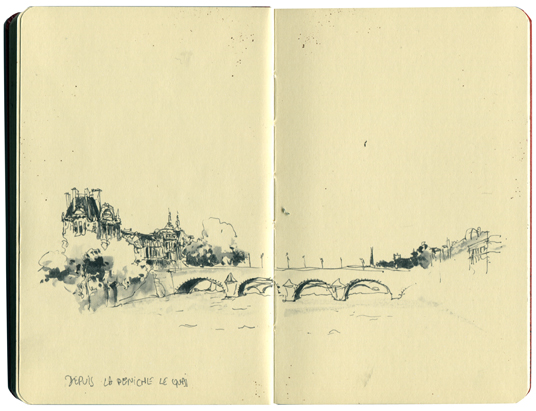Depuis la péniche Le Quai, Quai Anatole France, Paris. Encre sur Moleskine. Delphine Priollaud-Stoclet (c)
